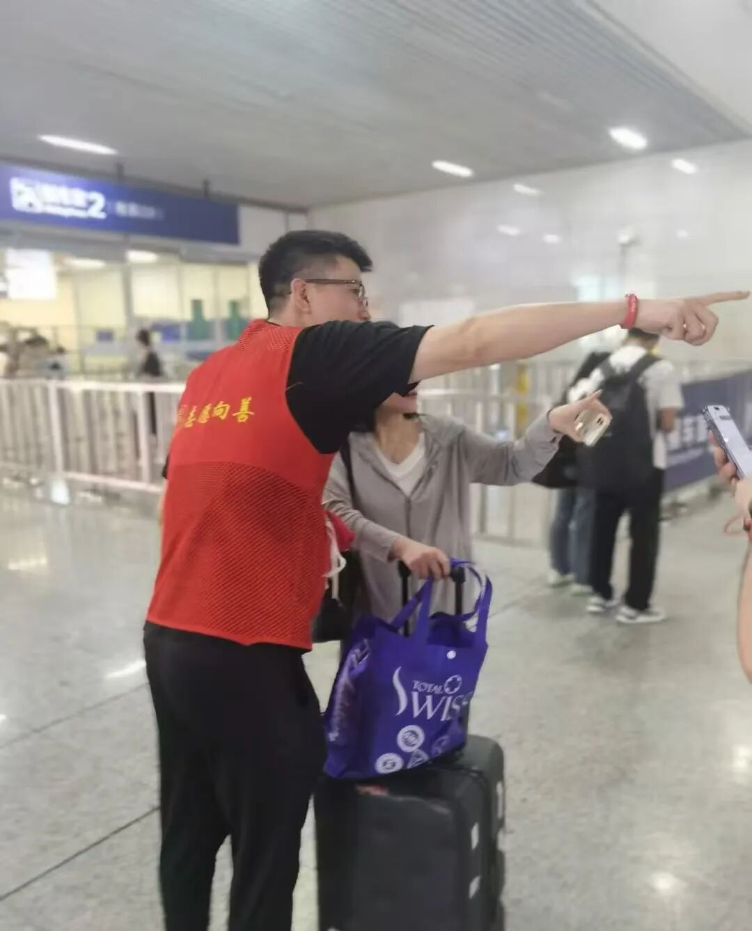 九月,青年学子们在现场分工协作:在安检口协助搬运行李,在候车区引导重点旅客就座、提醒检票信息。指引检票口,换来旅客一句句 “谢谢”,让服务的价值在细节中落地。